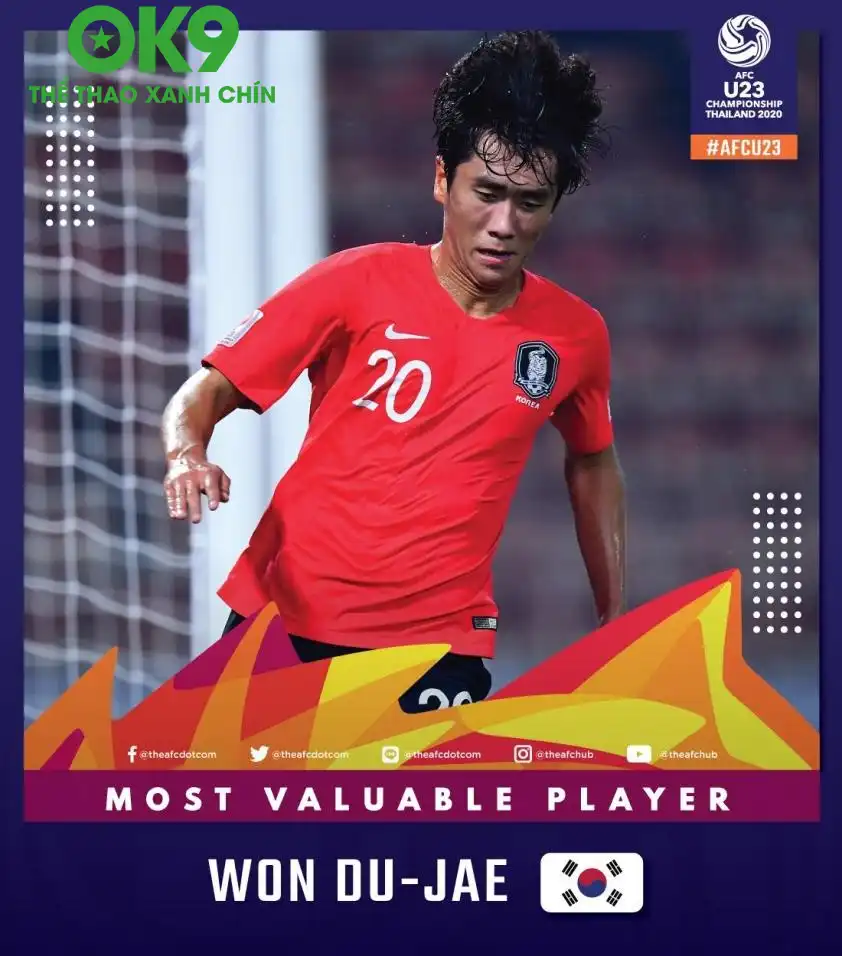 Won Du-jae không chỉ giỏi phòng ngự mà còn biết cách tạo ra đột biến. Anh đã kiến tạo một bàn thắng quan trọng cho Lee Dong-gyeong trong trận bán kết gặp Australia, mở ra cánh cửa vào chung kết. Và trong trận chung kết kịch tính thắng hiệp phụ Ả Rập Xê Út, khả năng hỗ trợ hàng phòng ngự vững chắc của anh chính là chìa khóa giúp Hàn Quốc bổ sung thêm một danh hiệu U23 châu Á vào bộ sưu tập đồ sộ của mình. Đúng là một “máy quét” kiêm “ông chủ tuyến giữa”!